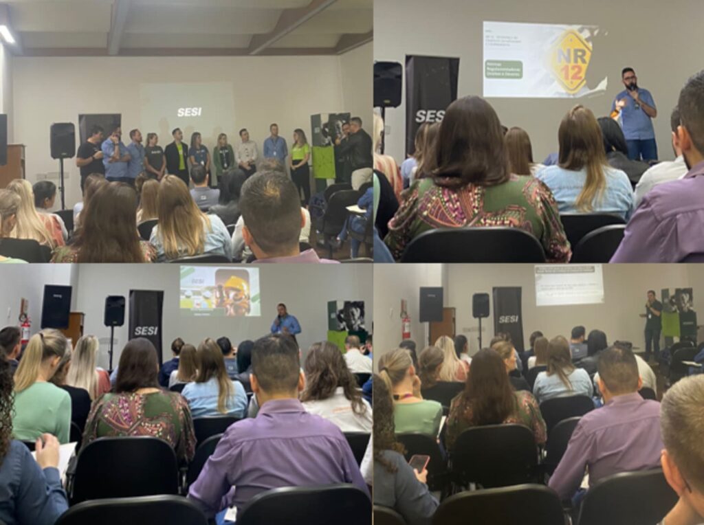 Das NRs que aprofundadas durante a palestra podemos citar a NR-12, que voltada para a segurança no trabalho em máquinas e equipamentos, exige medidas de proteção para evitar acidentes. Já a NR-23 foca na proteção contra incêndios, estabelecendo requisitos para equipamentos de combate ao fogo e saídas de emergência. A NR-35, por sua vez, trata dos trabalhos em altura, visando prevenir quedas que podem resultar em lesões graves ou fatais.